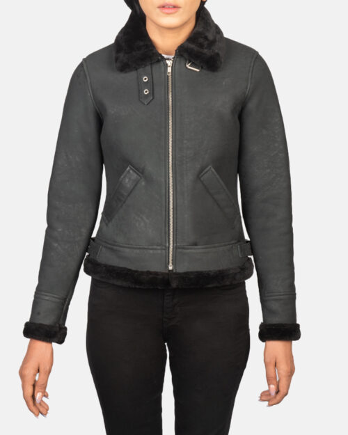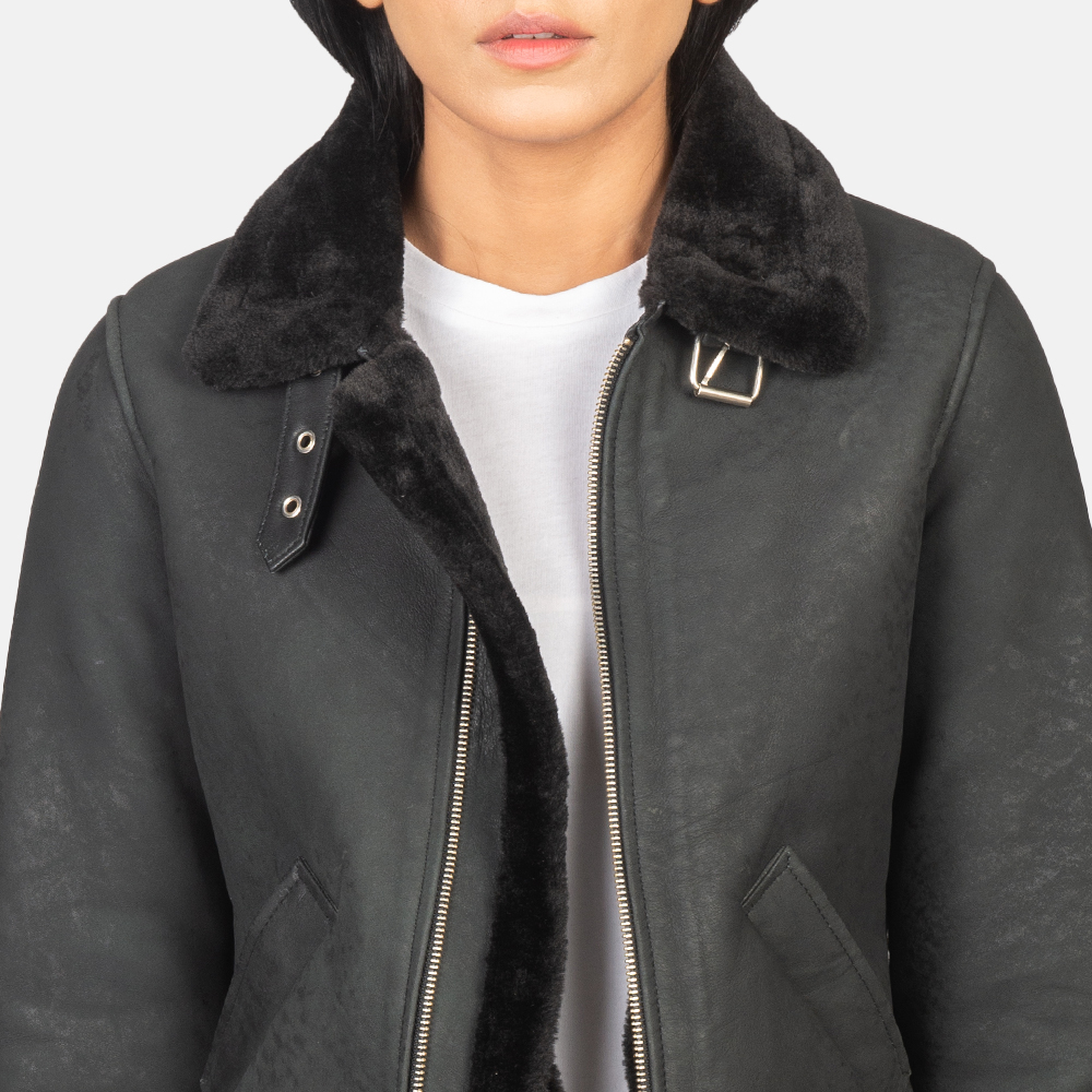 Vesper Black Leather Bomber Jacket