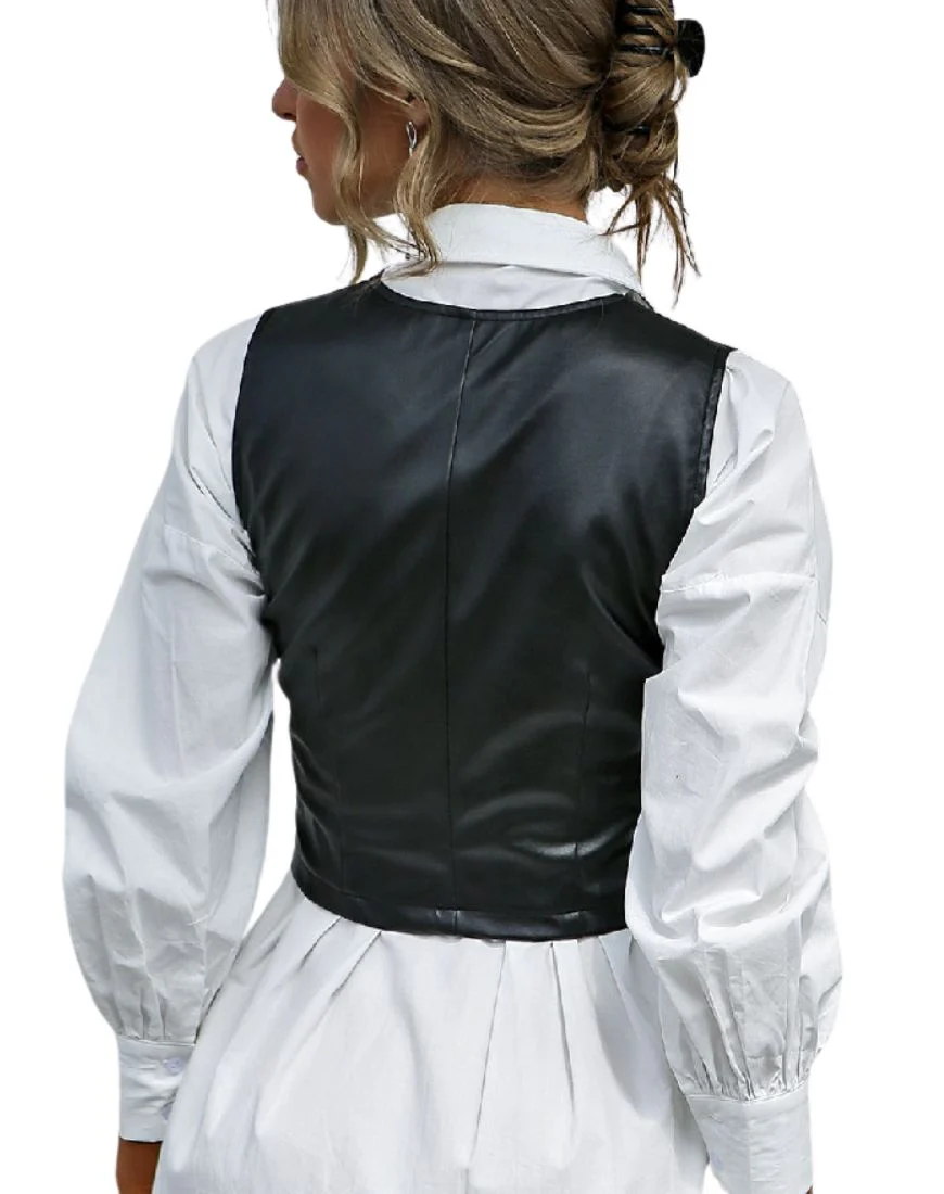 The cut of this vest is incredibly flattering! It hugs my shape just right without feeling too tight, and the leather has a sleek, polished look.