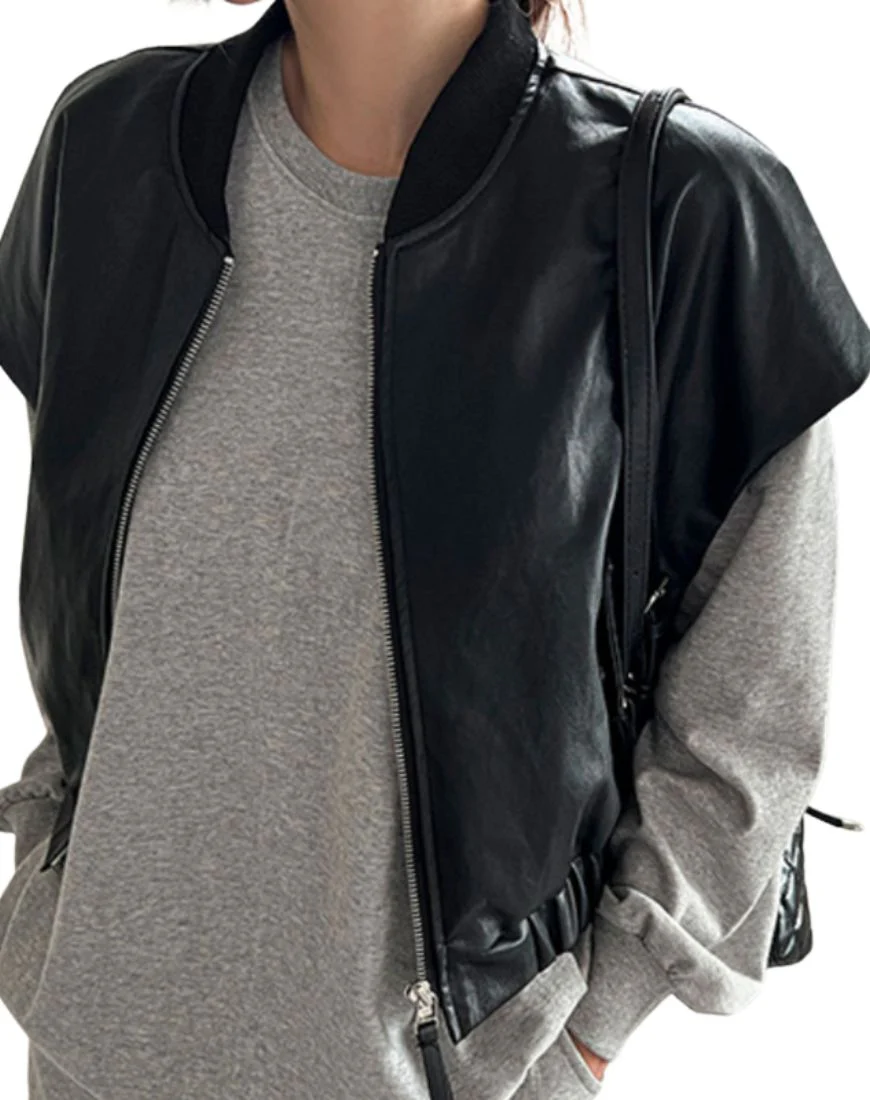 Presenting a fresh take on the classic leather style, this vest captivates with its inventive detailing and comfortable silhouette—a bold choice that genuinely elevates any outfit.