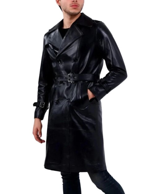 Bounty Hunter Black Leather Trench Coat