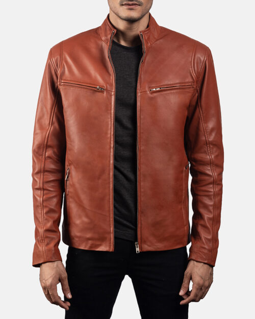 Bravix Tan Brown Leather Biker Jacket