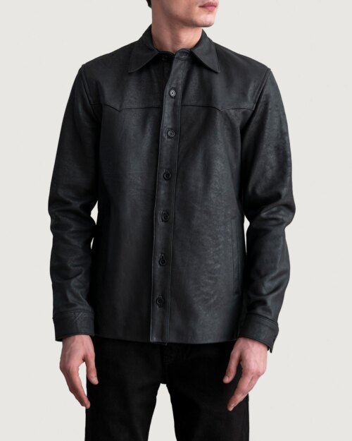 Buckaroo Tumbled Black Leather Shirt