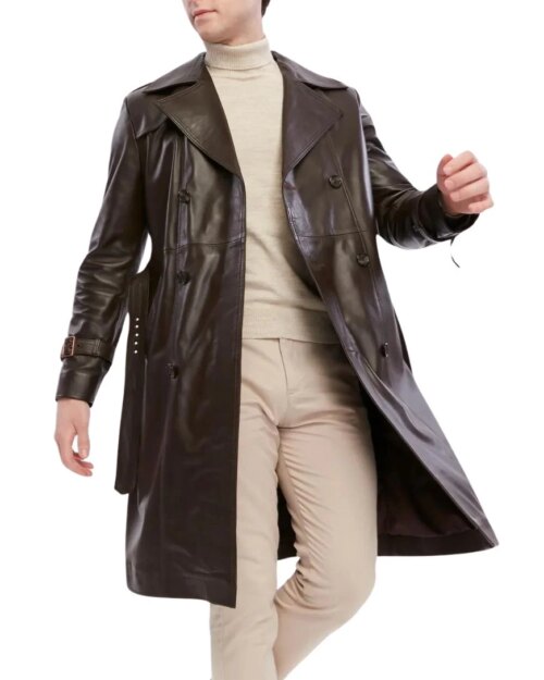 Bushido Brown Leather Trench Coat