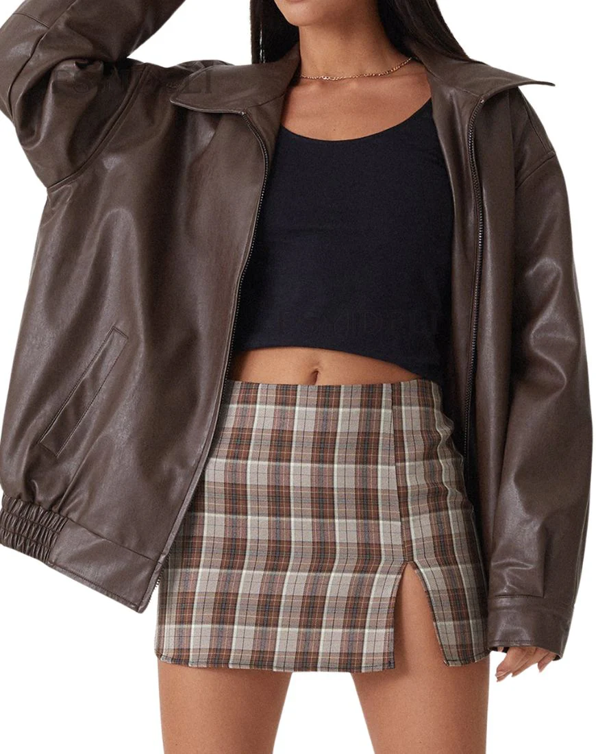 Caramel Wrap Brown Oversized Leather Jacket