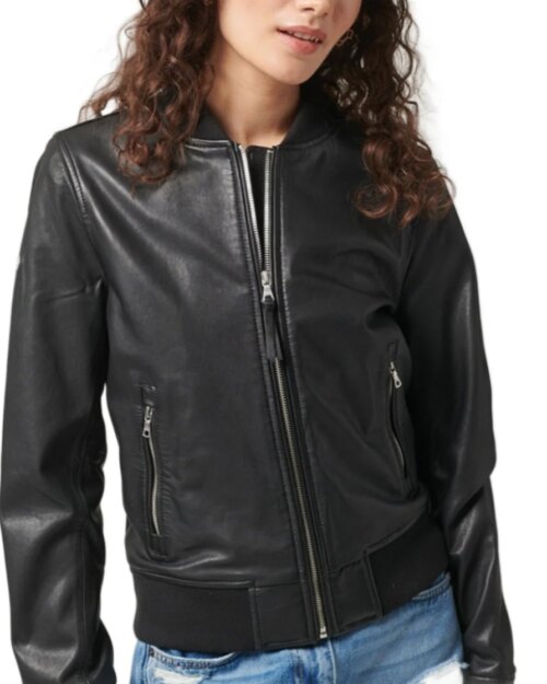 Vesper Black Leather Bomber Jacket