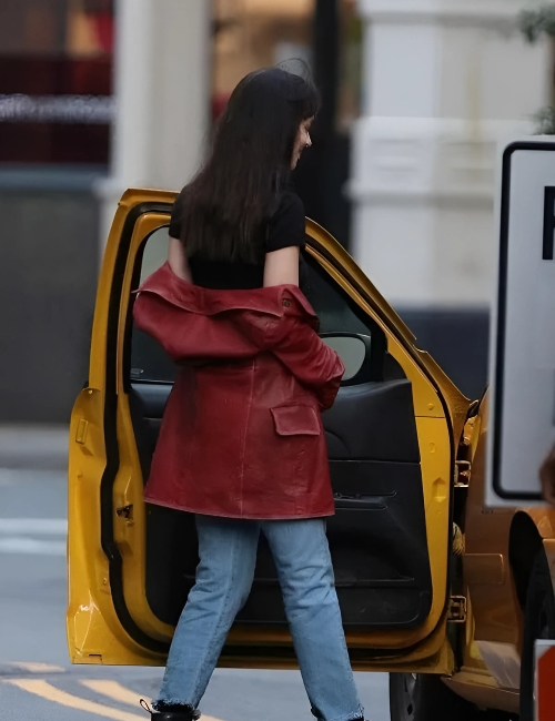 Dakota Johnson Madame Web 2024 Red Leather Coat