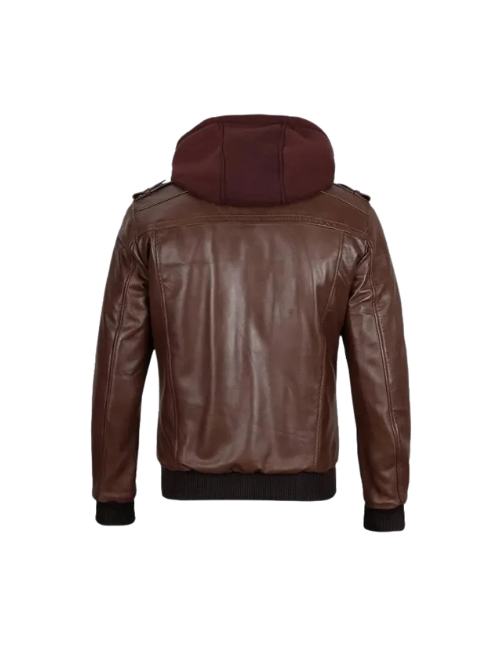 Dark Brown Hooded Leather Jacket For Men