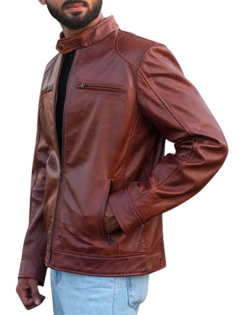 Stand out effortlessly in the Declan Cognac Cafe Racer Leather Jacket for Men, crafted for durability and everyday style