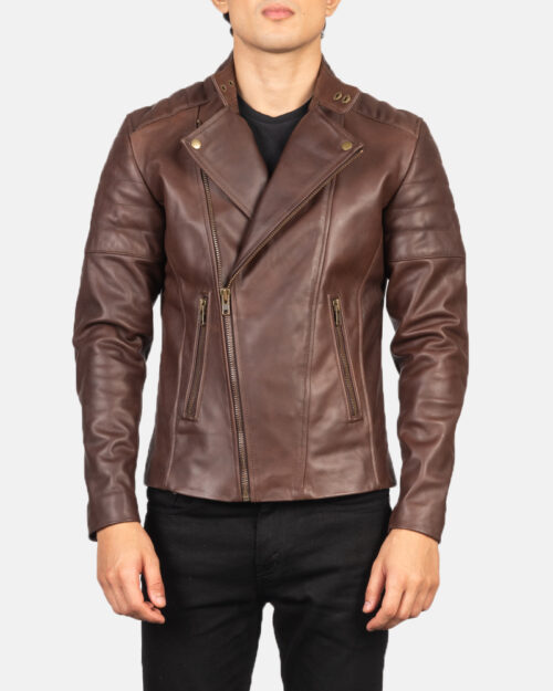 Dravik Brown Leather Biker Jacket