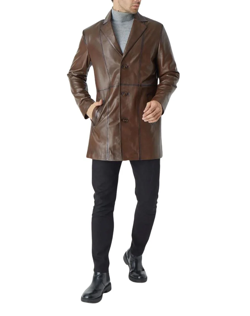 Dusk Warrior Brown Leather Trench Coat