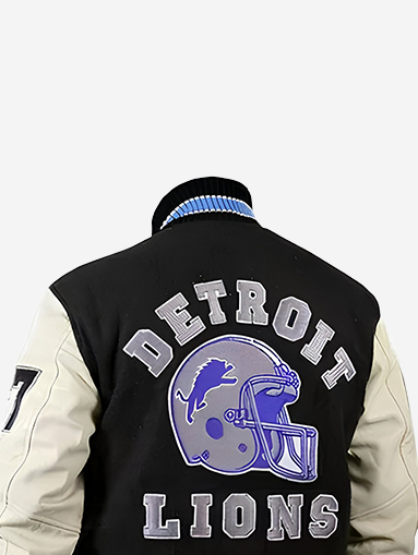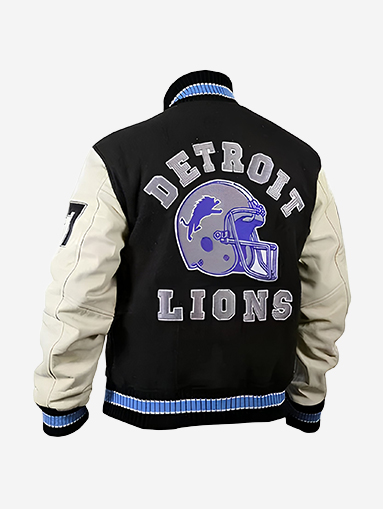 Design Feature: Classic varsity jacket styling inspired by Axel Foley in Beverly Hills Cop III, combining rugged leather sleeves with wool body panels for a standout look