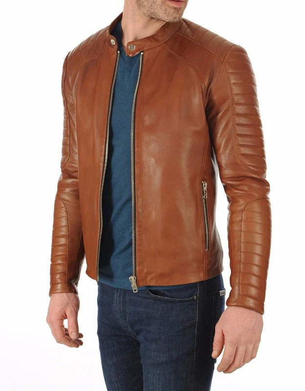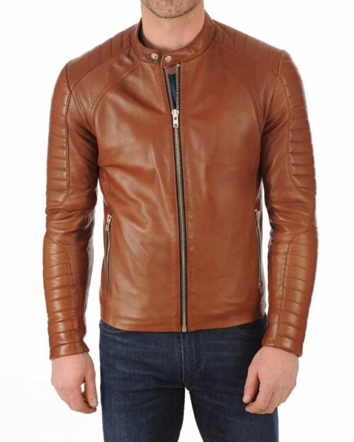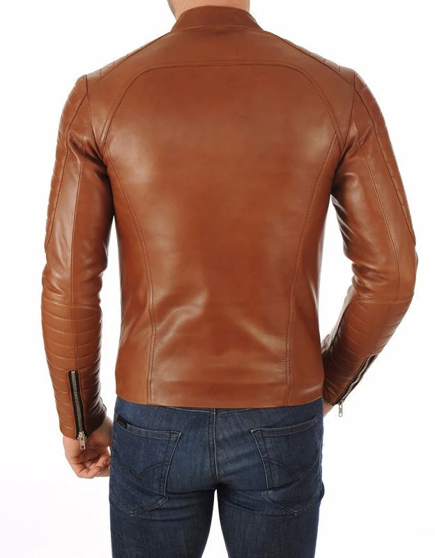Elegance Tan Leather Biker Jacket