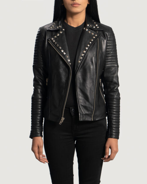Ella Mae Studded Black Leather Biker Jacket