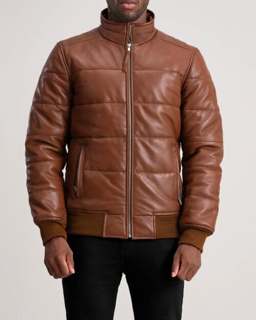 15 reviews for Fusion Brown Leather Puffer Bomber Jacket