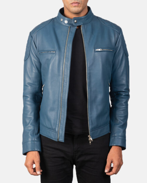 Gatsby Blue Leather Biker Jacket