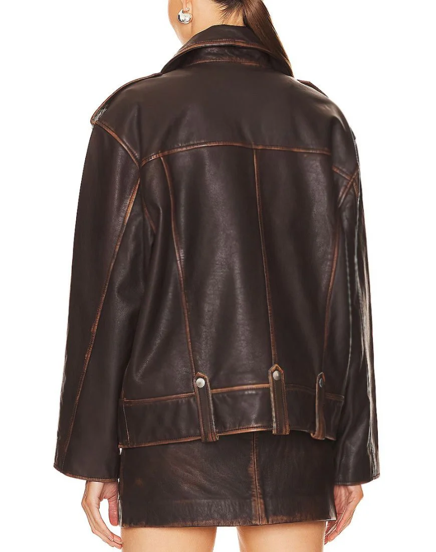 Grungy Luxe Distressed Brown Oversized Leather Jacket