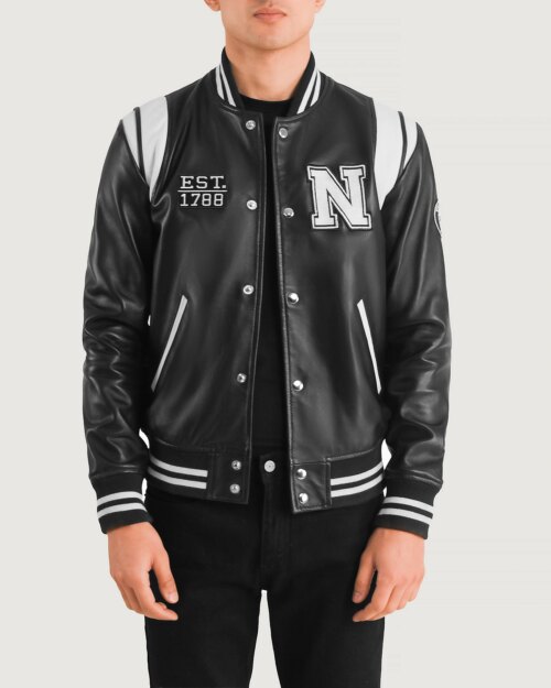 Harbor New York Black Leather Varsity Jacket