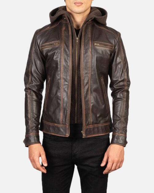 Hawker Vintage Brown Hooded Leather Biker Jacket