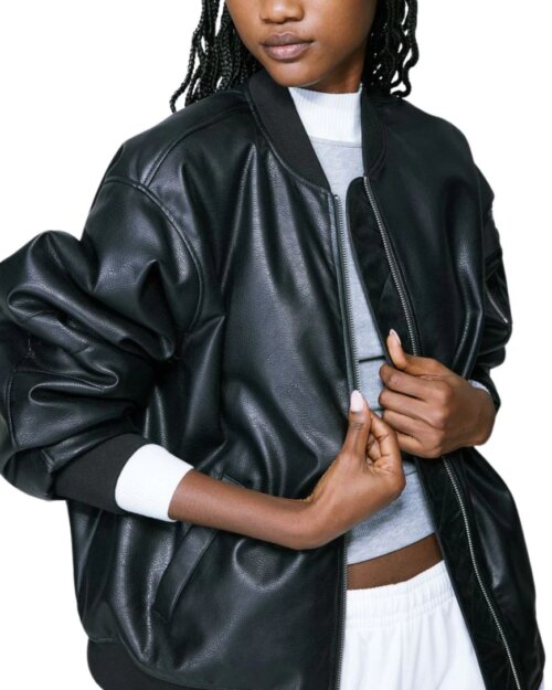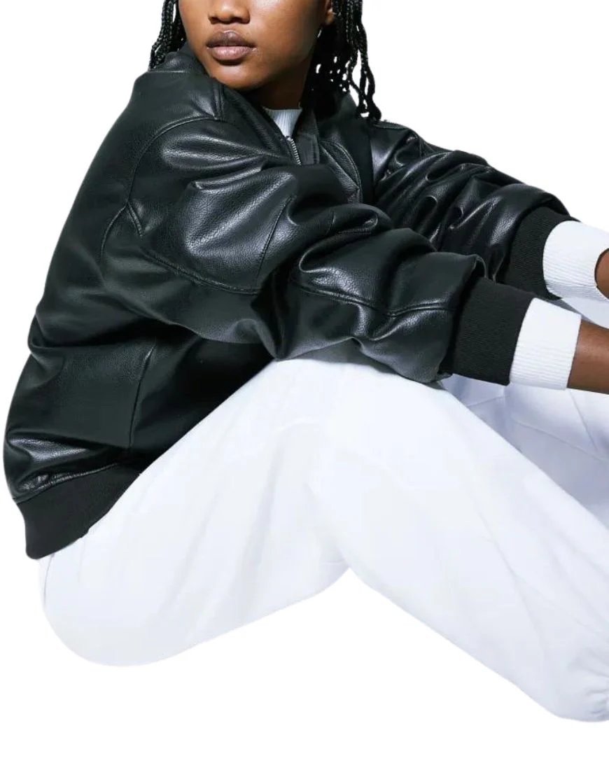 Vesper Black Leather Bomber Jacket