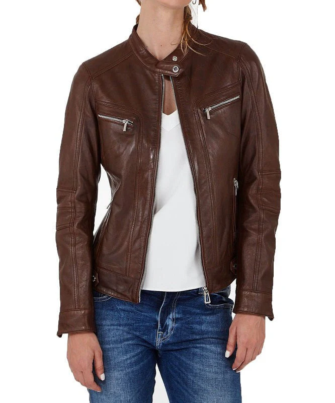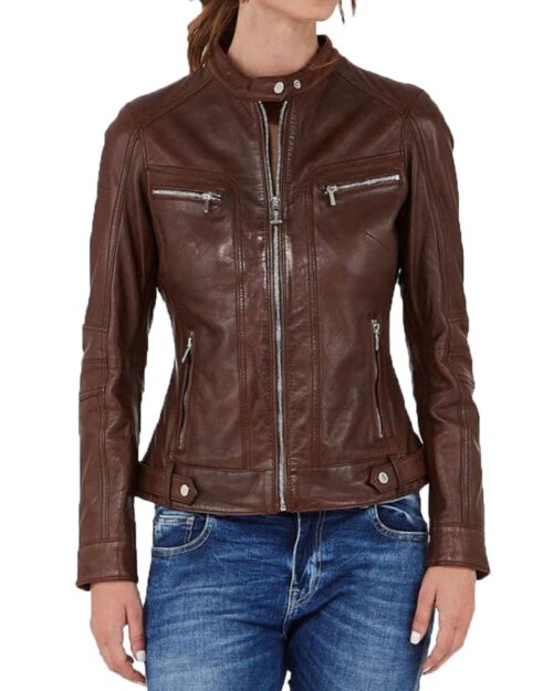 Ignis Brown Leather Biker Jacket