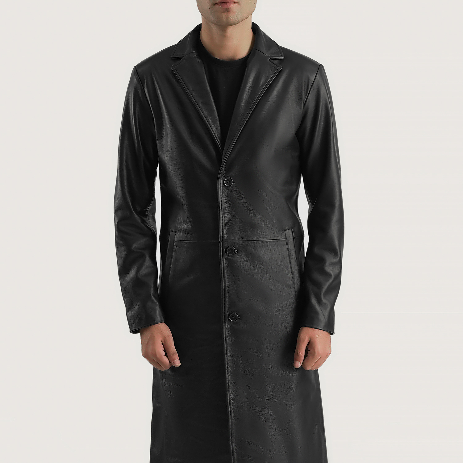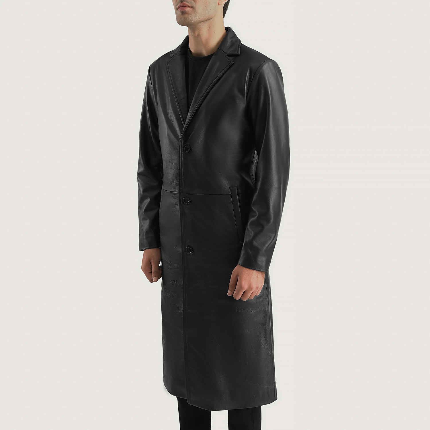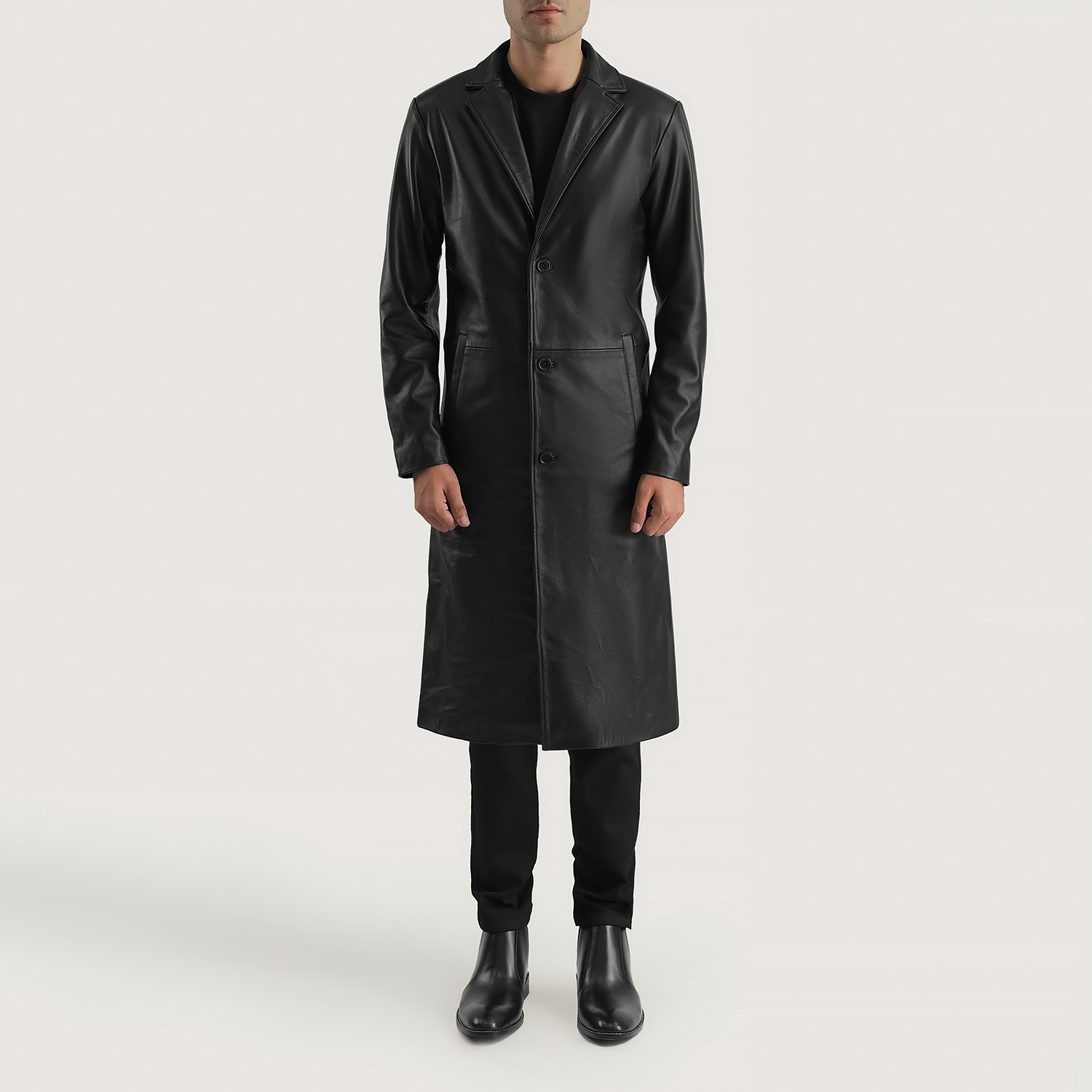 Jarek Black Leather Single Breasted Coat
