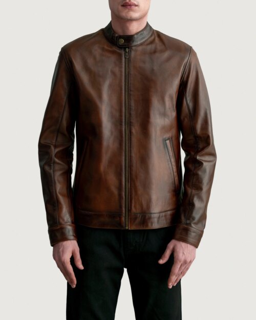 Kade Distressed Brown Leather Biker Jacket