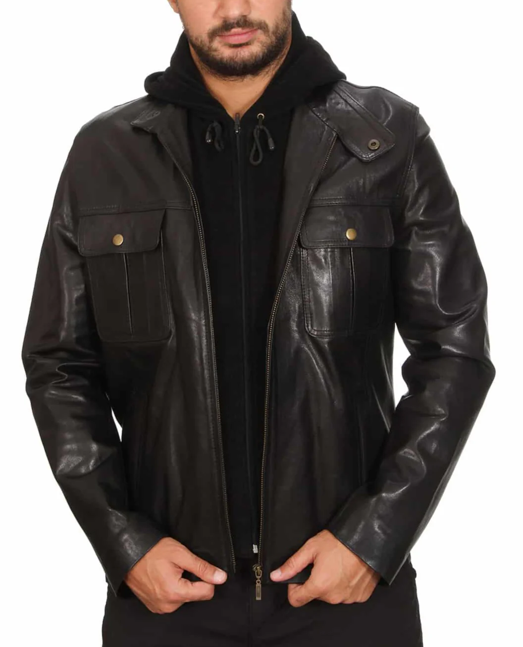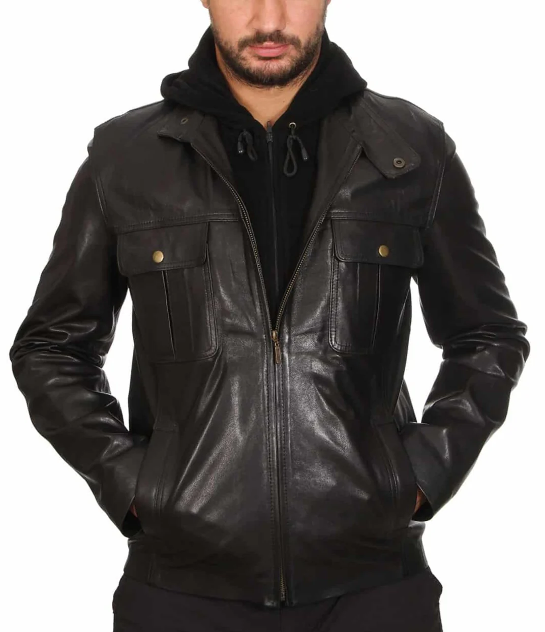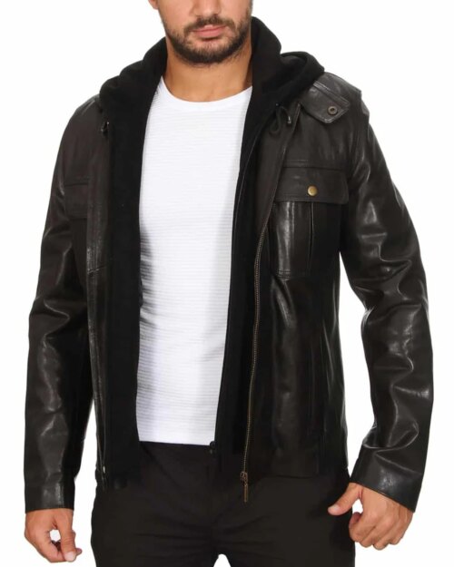 Lumen Black Detachable Hooded Leather Jacket