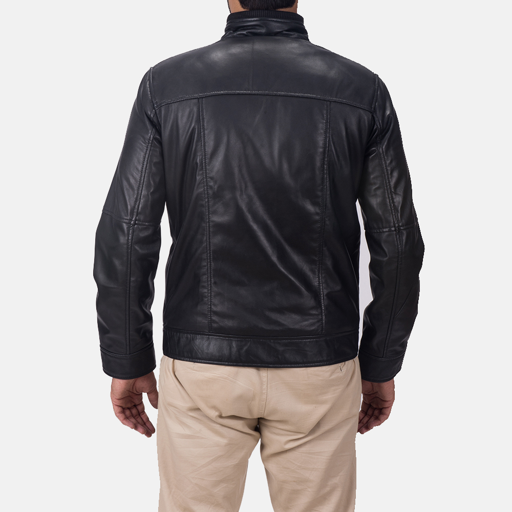 Nero Black Leather Bomber Jacket