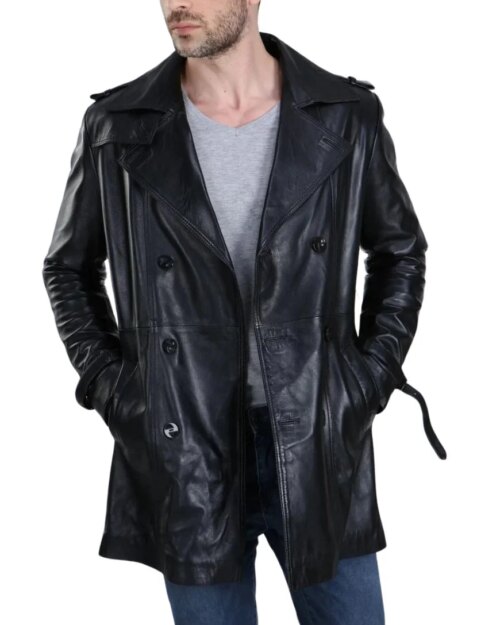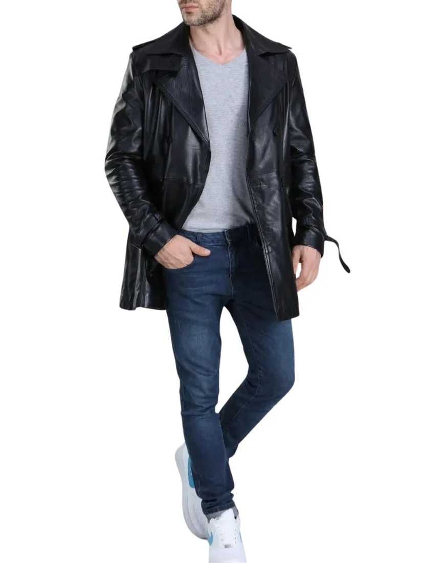 Murmillo Black Leather Coat