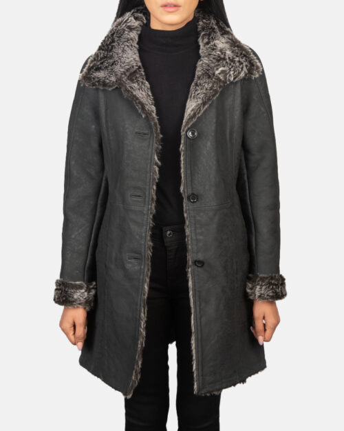 Opulence Shearling Black Leather Coat