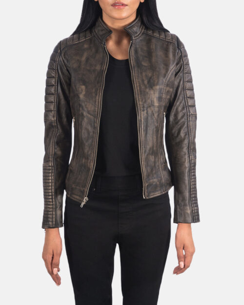 Chloe Quilted Distressed Brown Biker Jacket
