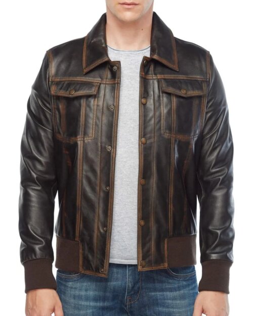 Rebel Distressed Brown Leather Bomber Jacket