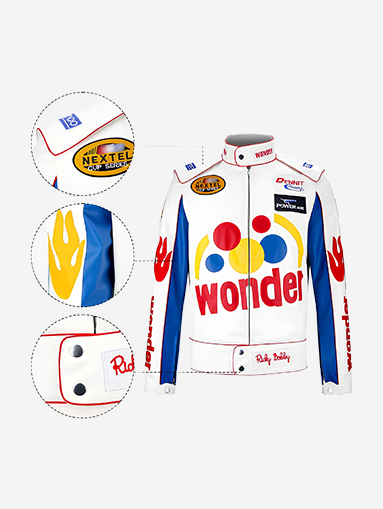 The Ricky Bobby Wonder Faux Leather Racing Jacket combines classic racing charm with modern comfort. Great for fans of bold, standout outerwear.