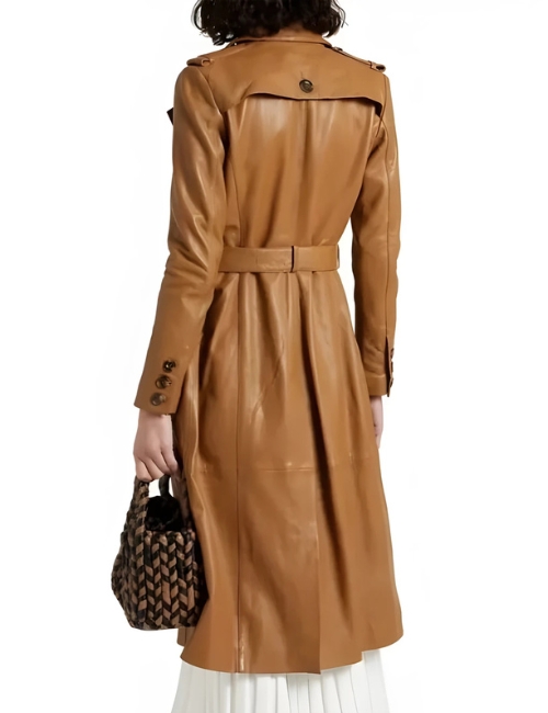 Riley Belted Tan Brown Trench Leather Coat
