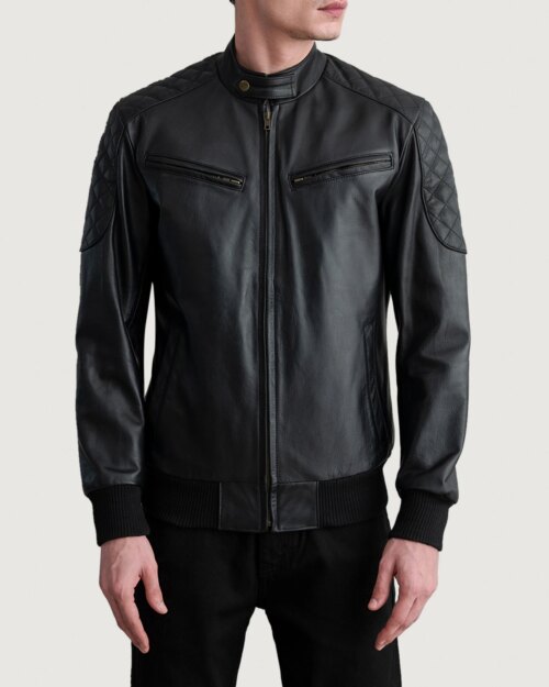 Riven Black Leather Bomber Jacket