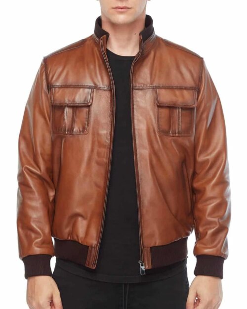 Aaron Brown Leather Bomber Jacket