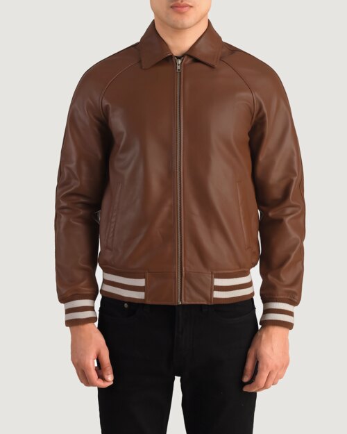 Rowen Brown Leather Varsity Jacket
