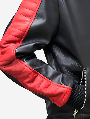 Aubrey Quilted Sleeves Red Cafe Racer Leather Jacket