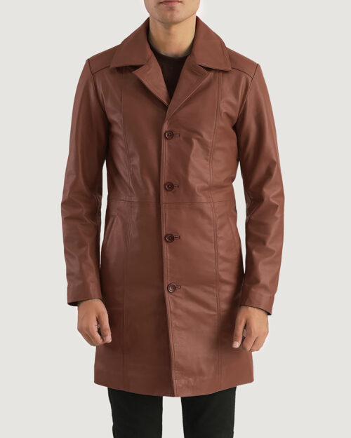 Shade Long Brown Leather Coat