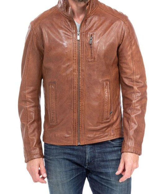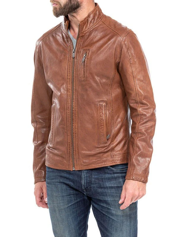 Skyline Tan Waxed Leather Biker Jacket
