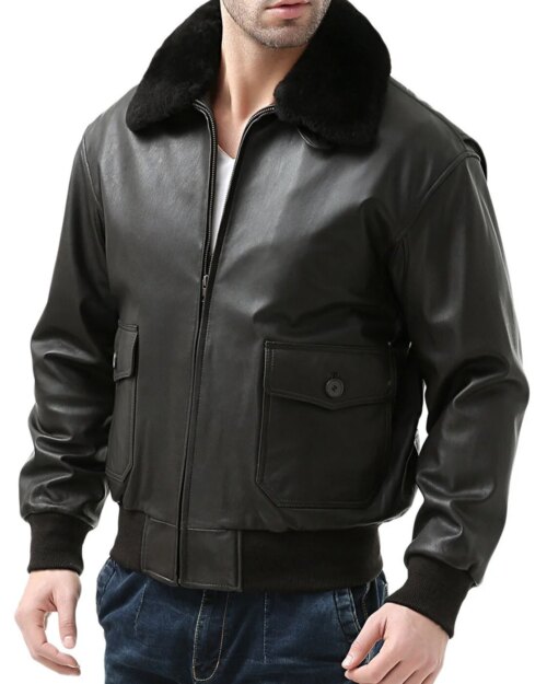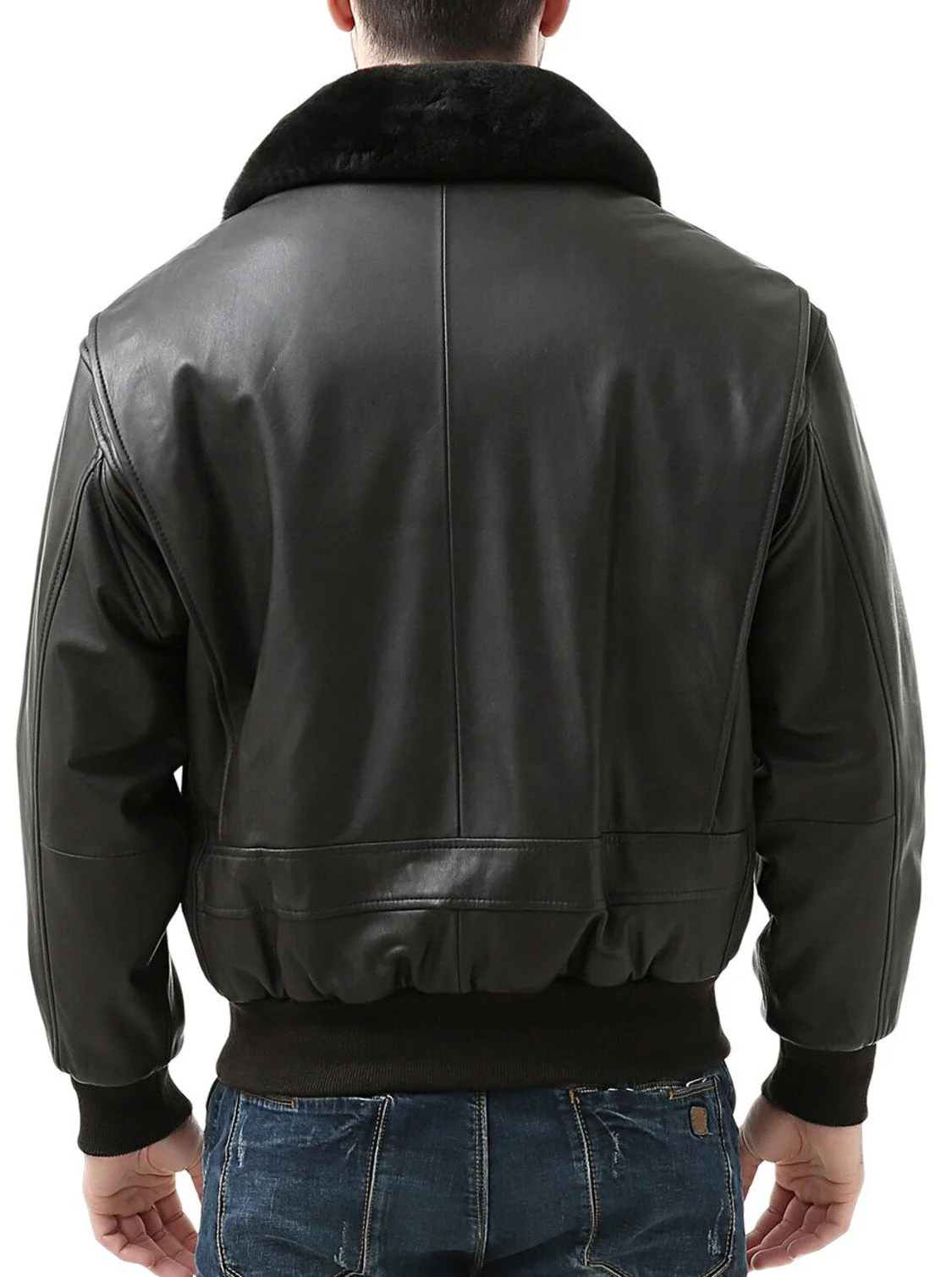 Warrior Ma-1 Distressed Black Leather Bomber Jacket