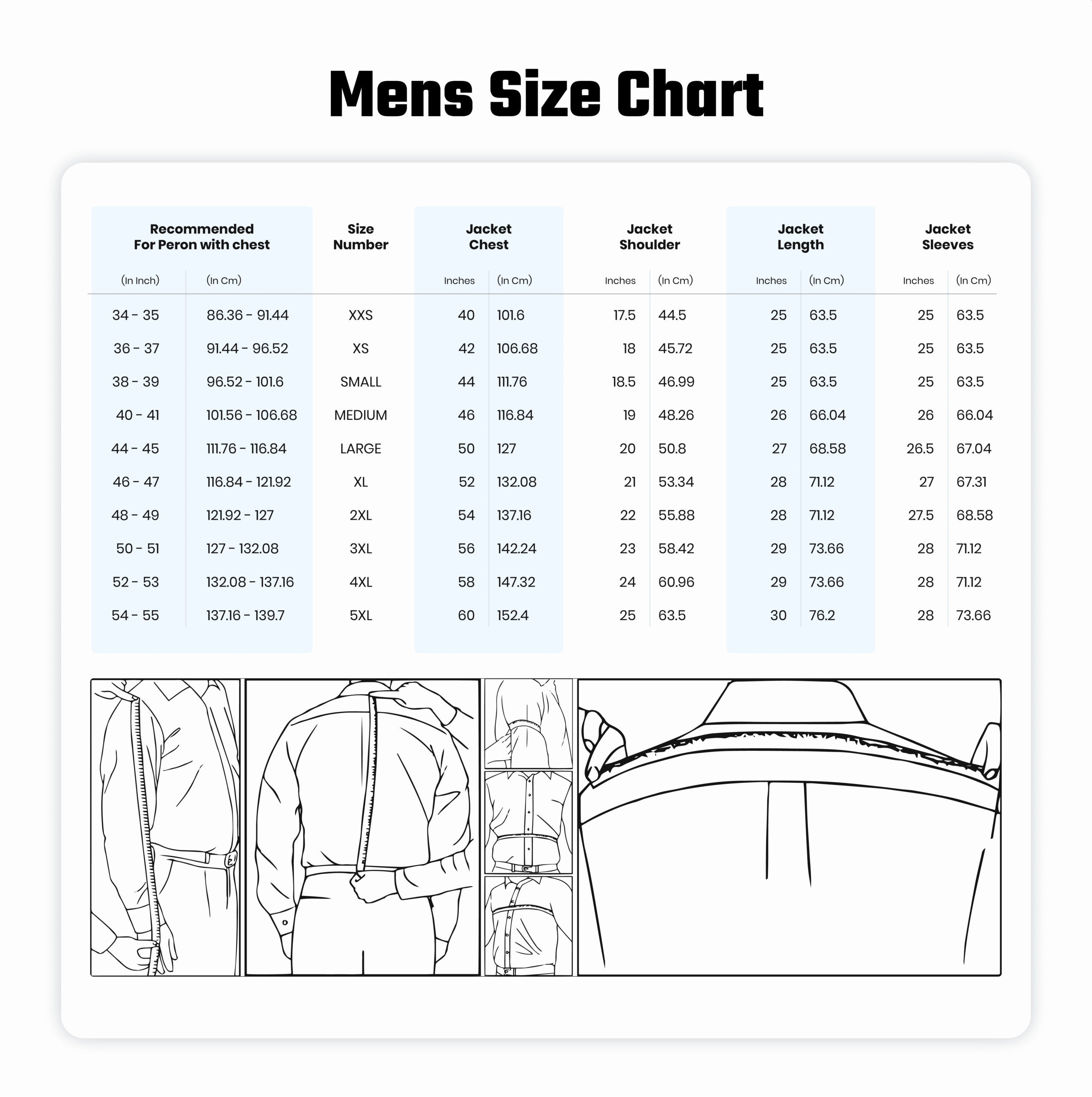 A great leather jacket isn’t just about style—it’s about feeling confident and comfortable. That’s why we offer a wide range of sizes, from XS to 4XL, so everyone can experience the joy of wearing a jacket that fits just right. Whether you’re big, tall, or plus-size, we’ve designed our jackets to fit every shape, ensuring you look and feel your best—because great style doesn’t come in one size.