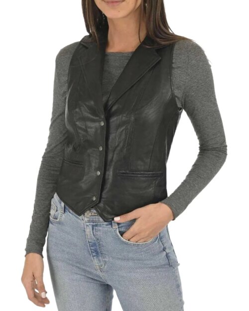 With a sleek silhouette and smooth finish, this vest delivers a fresh twist on the classic leather style, balancing comfort with bold elegance.