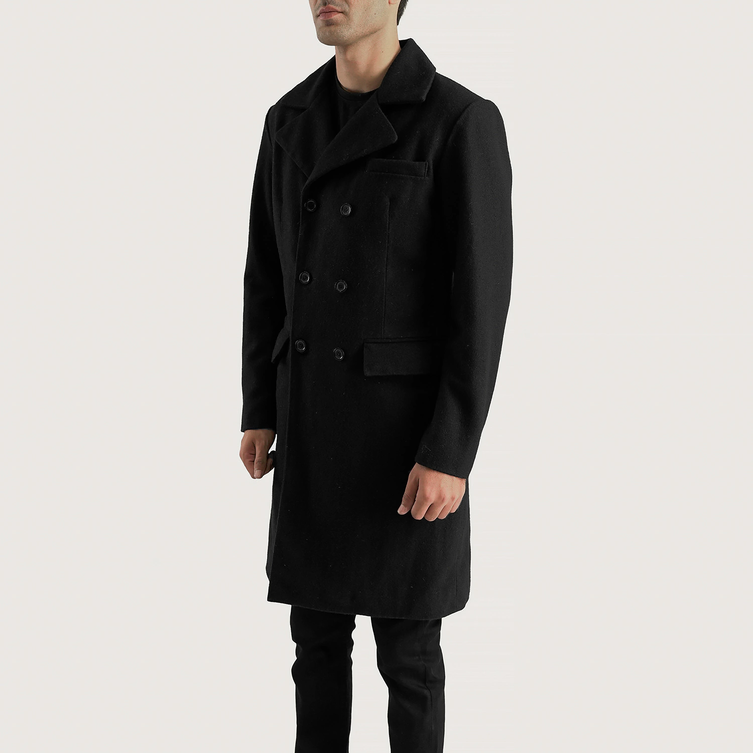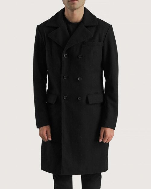 Tracer Black Wool Double Breasted Coat