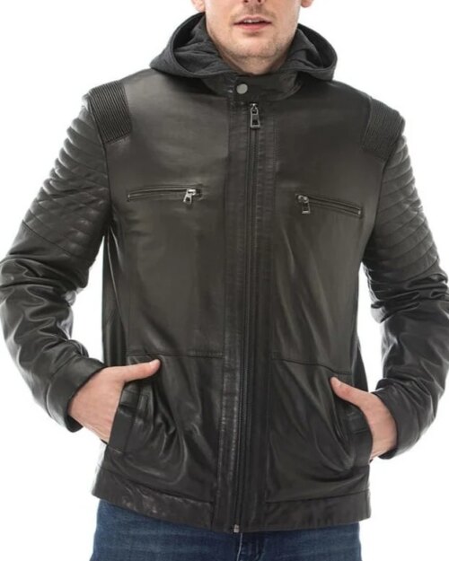 Tranquil Black Detachable Hooded Leather Jacket