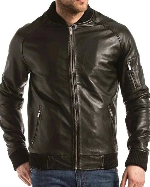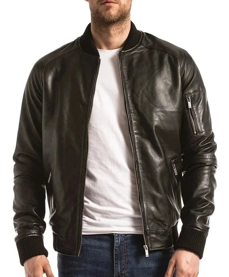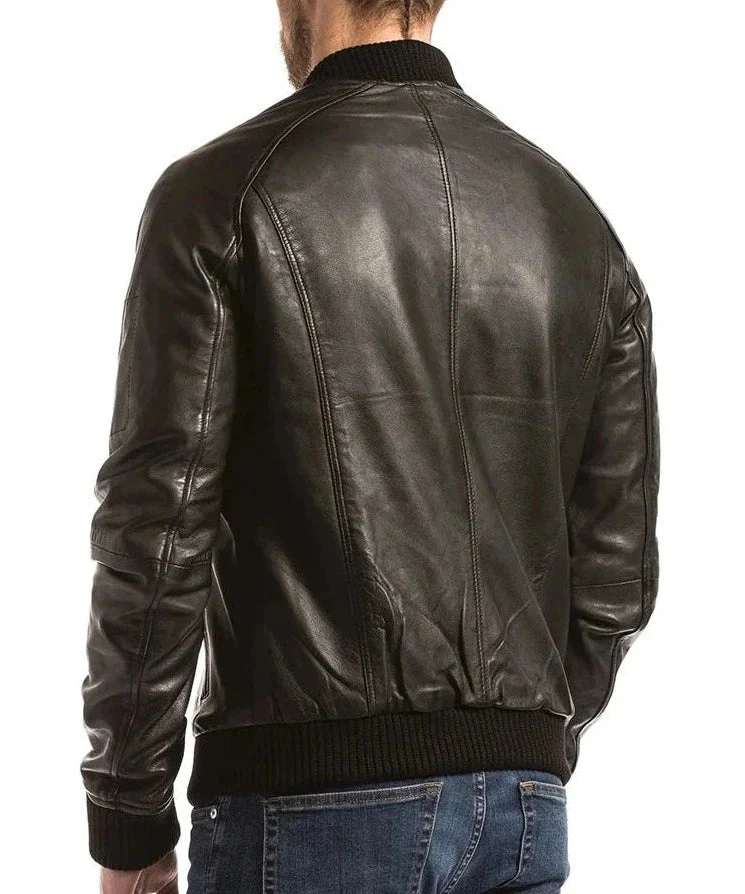 Warrior Ma-1 Distressed Black Leather Bomber Jacket