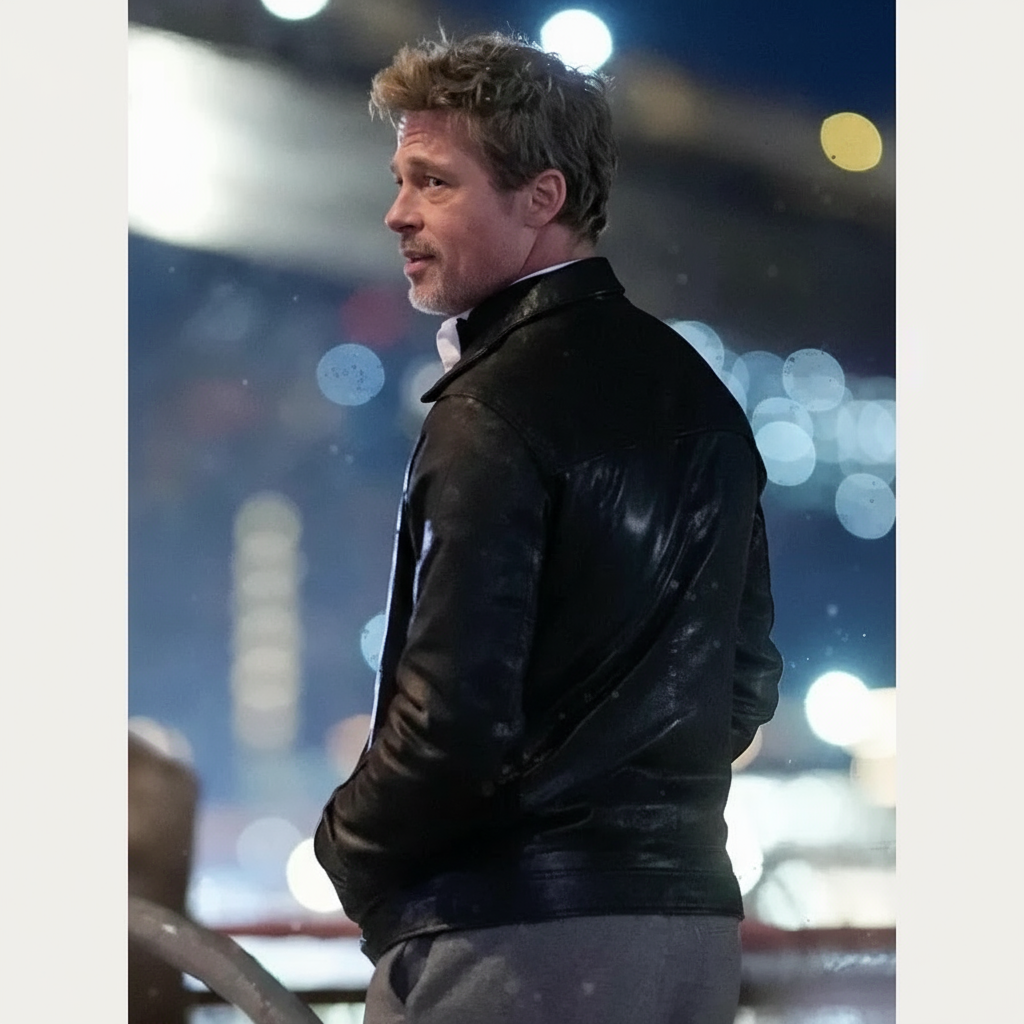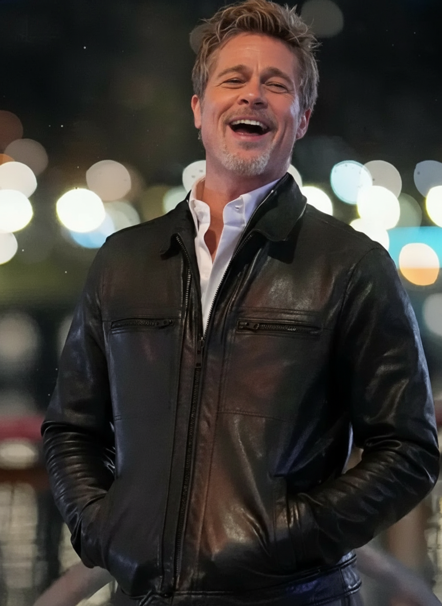 Wolves 2024 Brad Pitt Black Leather Jacket