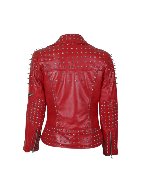 Womens Red Spike Studded Leather Jacket